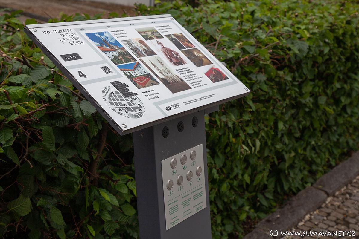 Vycházkový okruh centrem Klatov vznikl v roce 2016 pro individuální návštěvníky Klatov, kteří mají zájem o krátké seznámení s historií města a jeho nejvýznamnějšími památkami. Kromě zajímavostí zde najdete i historické fotografie a stará vyobrazení Klatov. Rozšiřující informace a další obrázky lze najít na internetu pomocí QR kódu.
