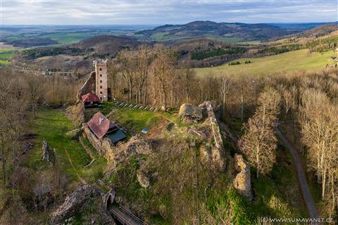 Autem: Asi 500 metrů pod hradem se nachází parkoviště. Odtud se k hradu dostanete krátkou pěší cestou po značené stezce.