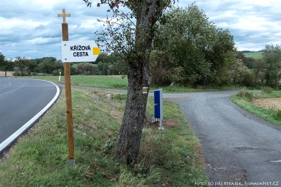 Křížová cesta vede od chatové osady v Čínově a končí po půl kilometru v osadě Kydliny.