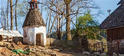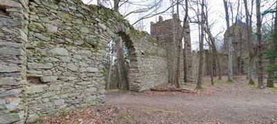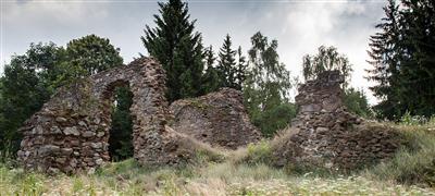 Romantická zřícenina kostela z roku 1370 na vrchu nad obcemi Běšiny a Tržek